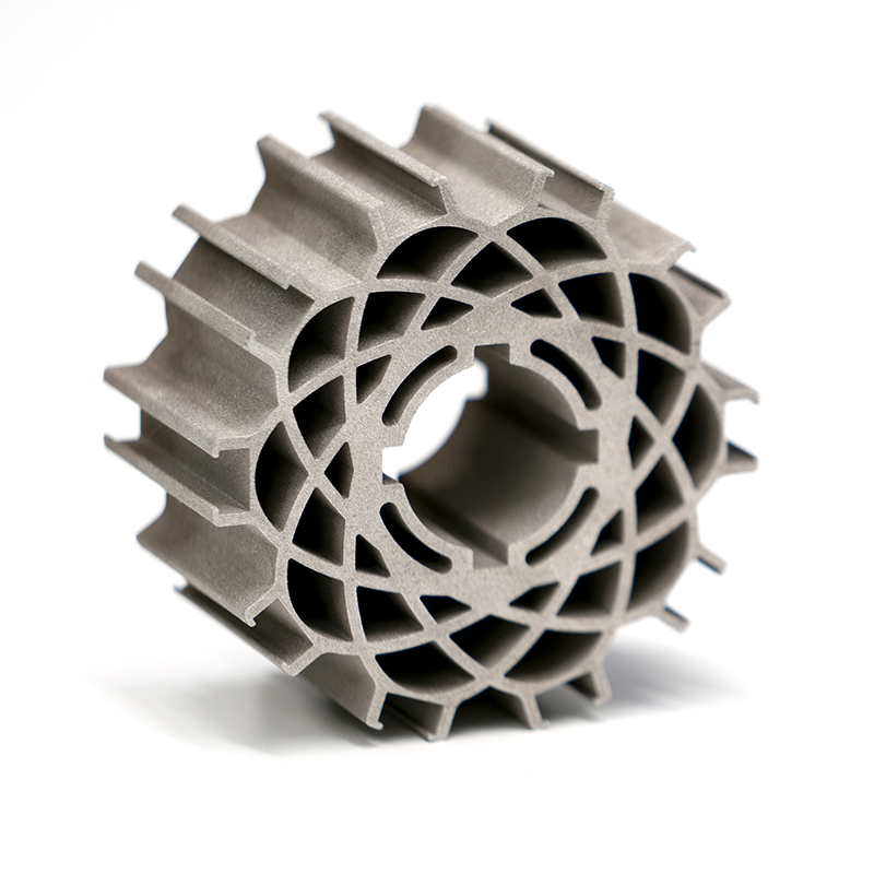 En central maskindel fremstillet på en additiv (3D) printer med Exmet’s materialer. Foto: Exmet Amorphous Technologies AB