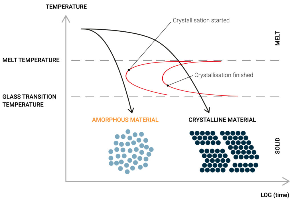 Den hurtigere afkøling giver en stærk amorf materialestruktur. Illustration: Exmet Amorphous Technologies AB