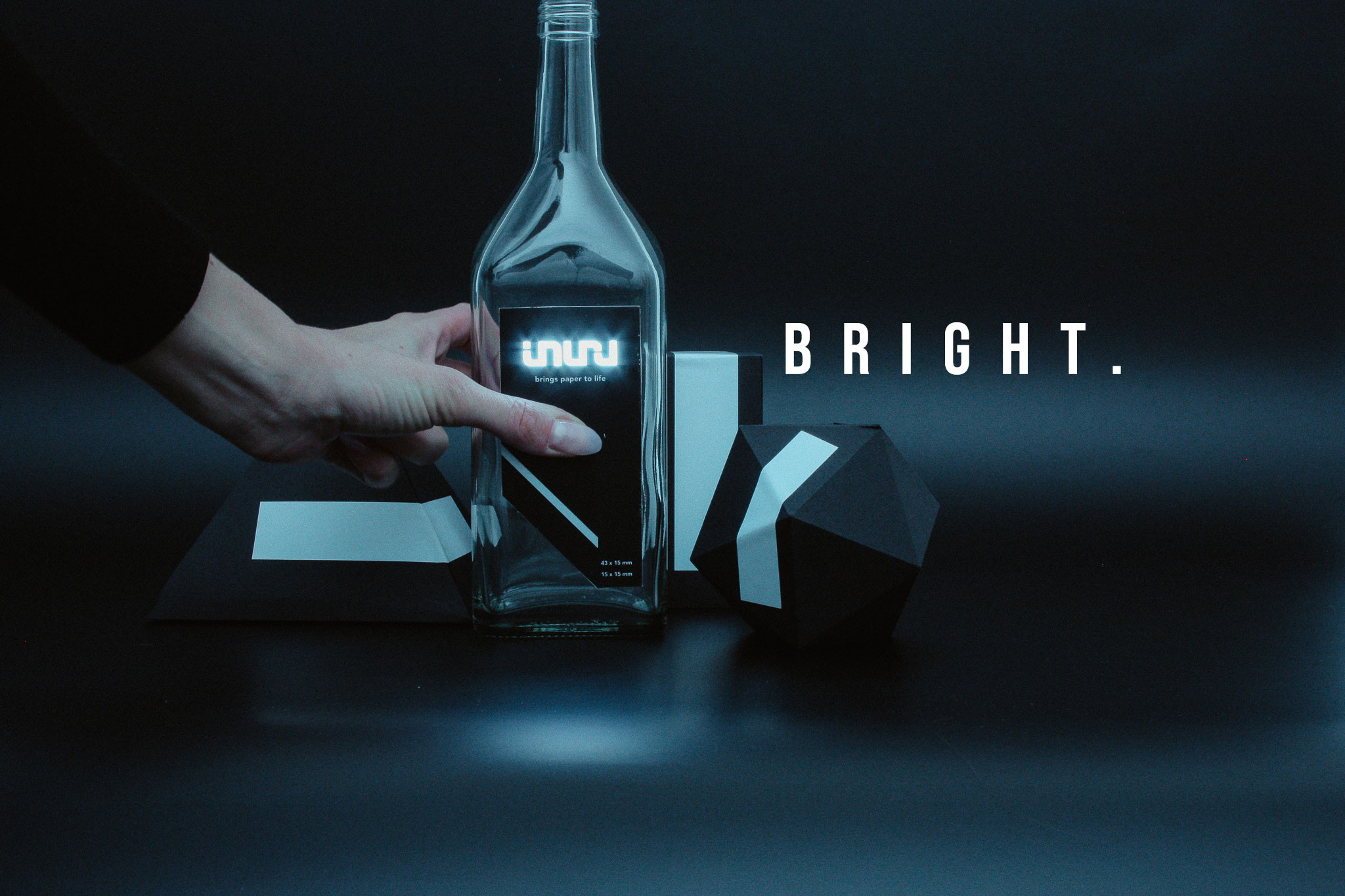Der kommer løbende nye tiltag for at tiltrække sig forbrugernes opmærksomhed. Den tyske virksomhed Inuru introducerer nu et materiale, som indeholder en OLED skærm og og et batteri, som f.eks. kan få et varemærke til at lyse op, når etiketten berøres. Konceptet kan også anvendes til karton emballager og diverse reklamematerialer.
