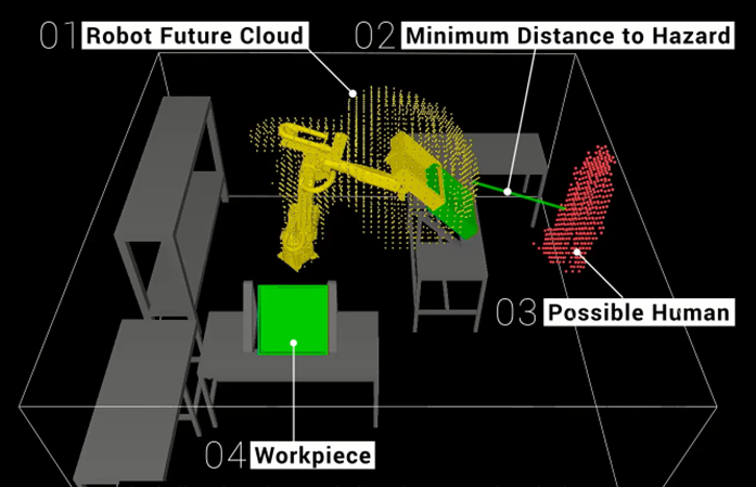 Med Veo Robotics FreeMove software ændrer dette sig totalt, fordi videoovervågningen løbende i ”real-time” fortæller robotten hvor en eller flere operatører eventuelt befinder sig i arbejdsområdet.